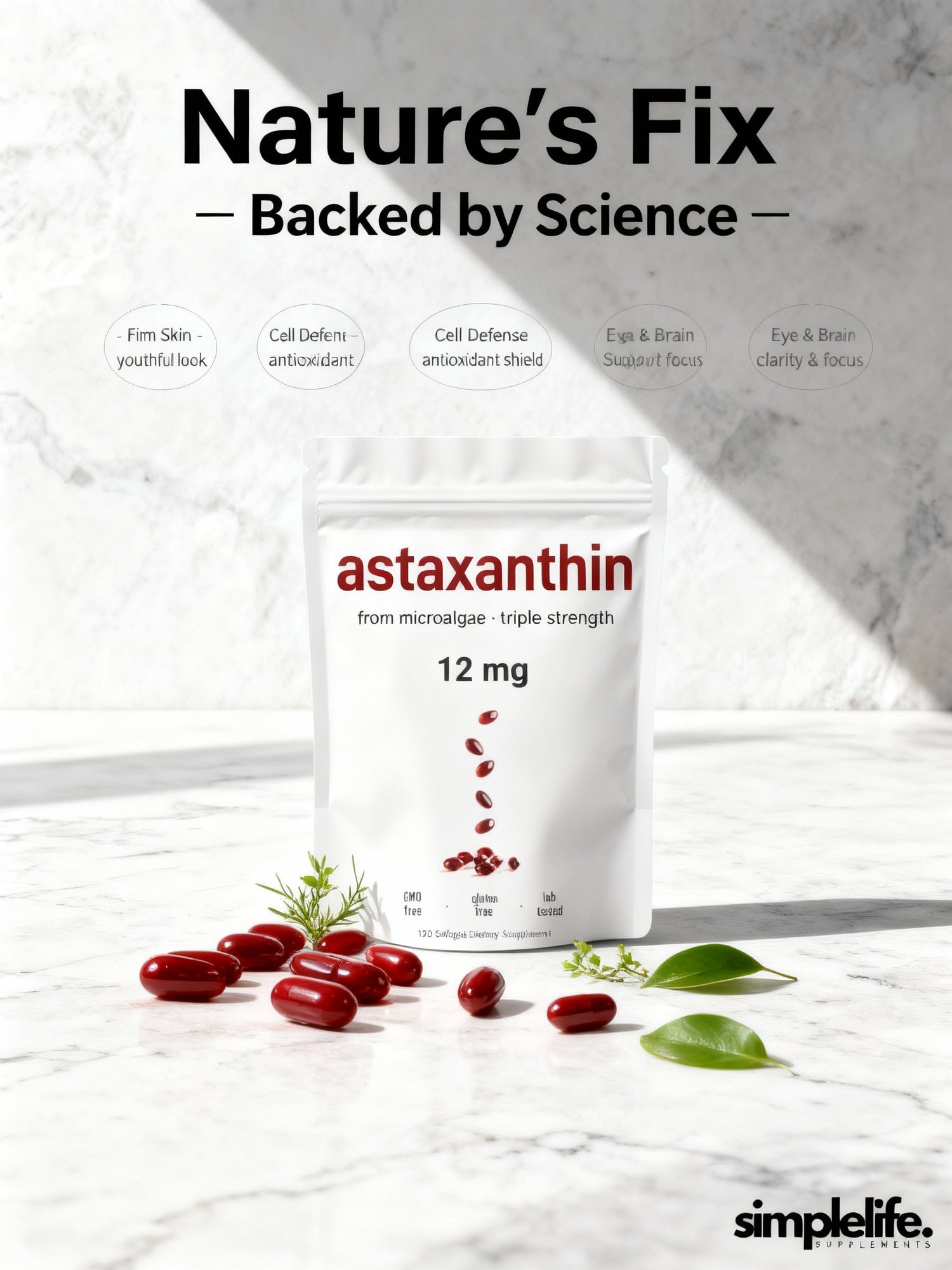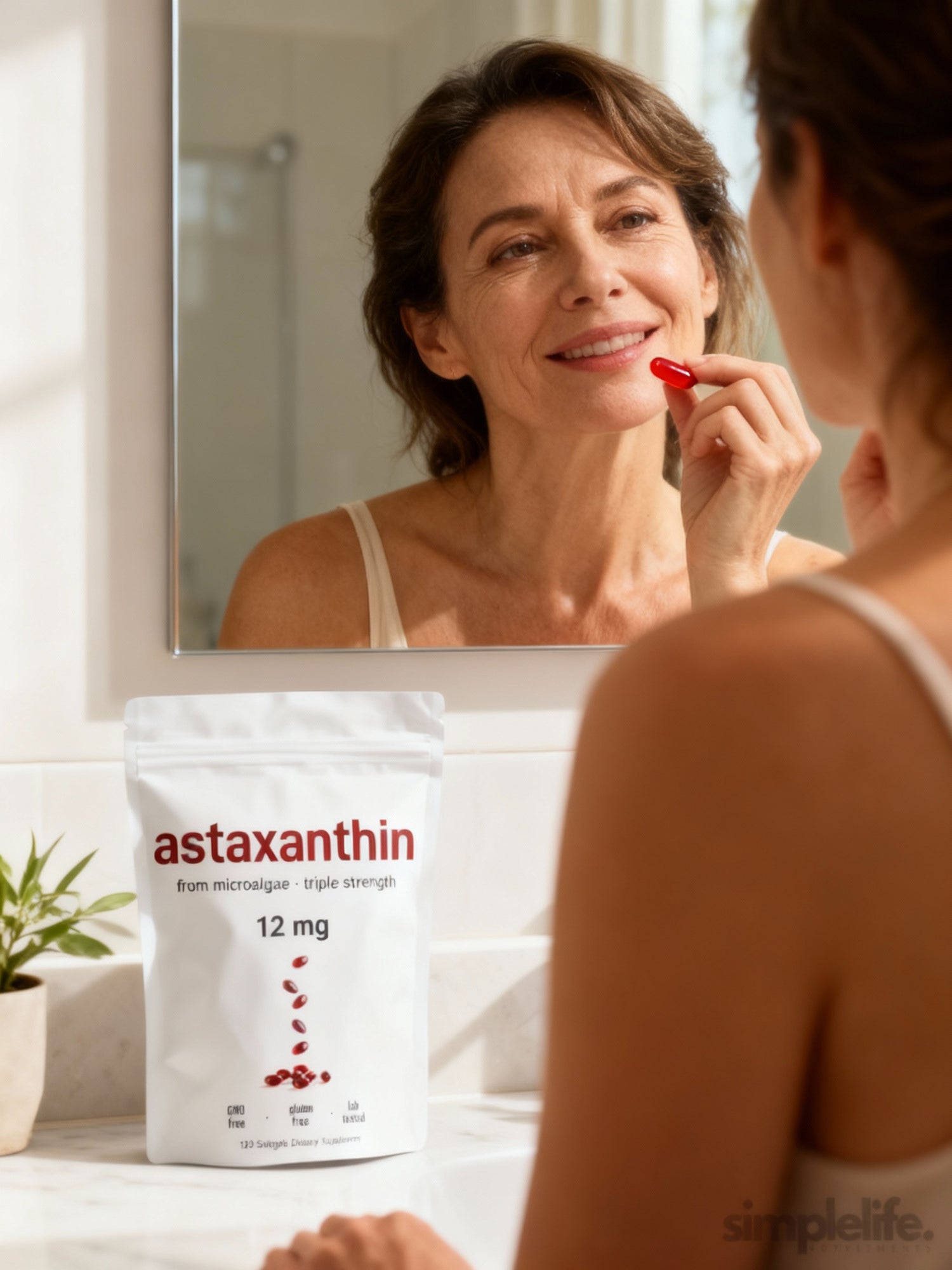 That’s why Astaxanthin 12mg is different. This clinically studied antioxidant works at the cellular level to restore firmness, protect against UV damage, reduce oxidative stress, and support steady energy and focus — all in one simple daily capsule.